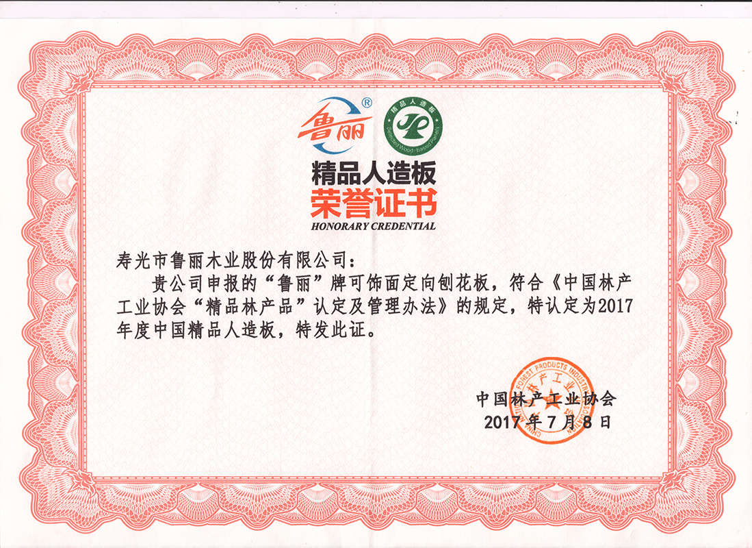 2017年度中國精品人造板